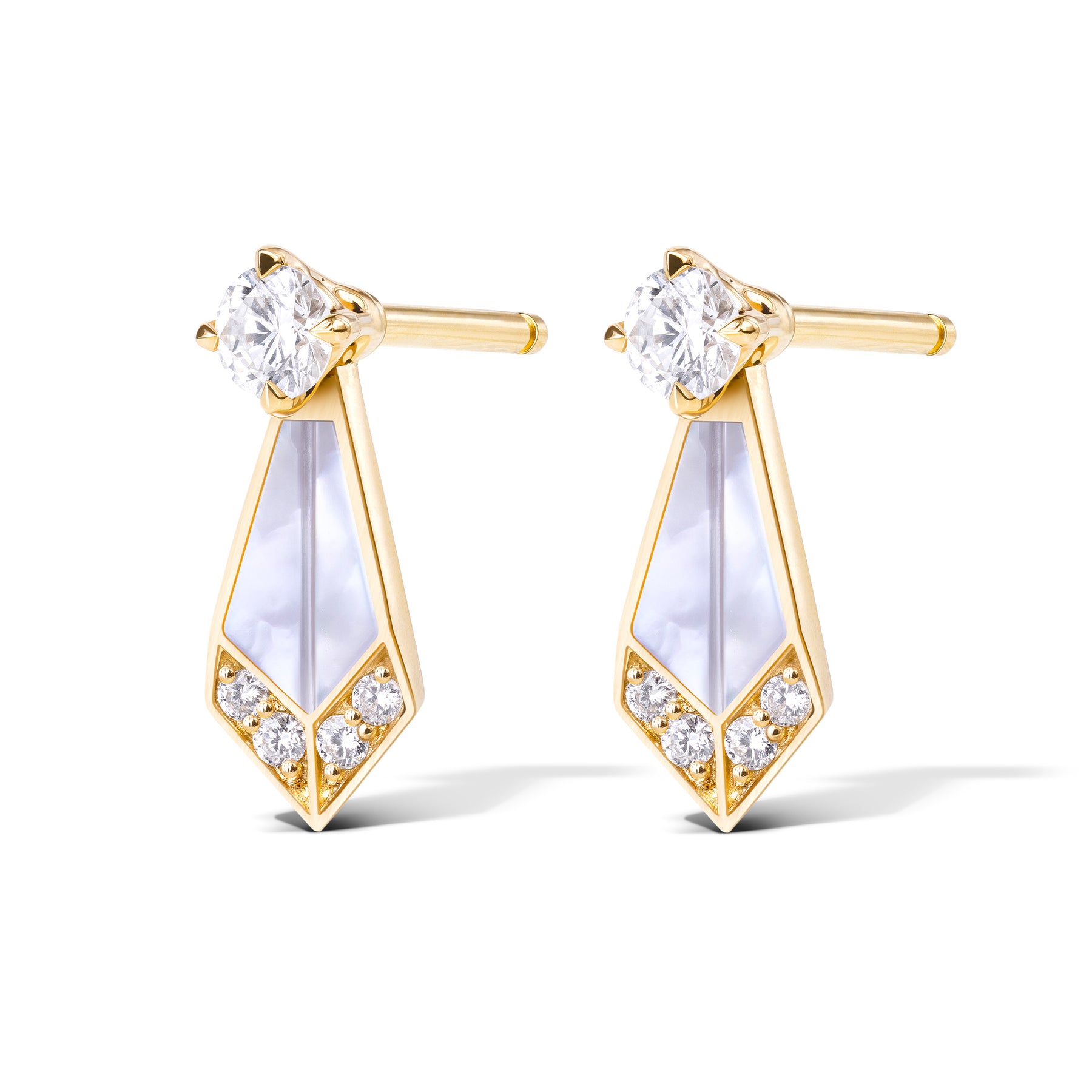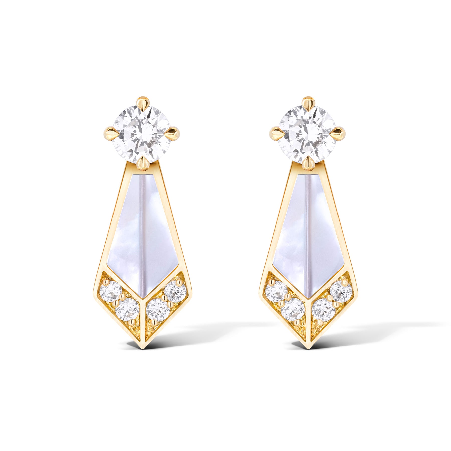 This chic pair of Desert Rose Mini Earrings features a single petal design in yellow gold, adorned with diamonds and white mother-of-pearl. Delicate and timeless, they add a touch of understated elegance to any look.